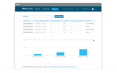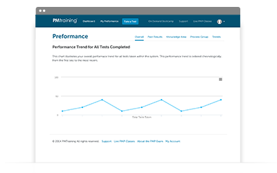 The personalized My Performance tab will help you focus your CAPM study efforts by analyzing your performance. Each CAPM practice test you take is tracked to give you a summary view of your performance trend over time.